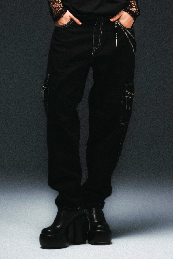 Inspirado en en la cultura del post punk de fines de los 70s, & en la canción Babes of the 80s de Lebanon Hanover, éste pantalón rememora una era donde los detalles recargados eran característicos, desde su tipología hasta sus detalles constructivos, es funcional para un look informal. Este ítem pertenece a la cápsula Sempiternal 2025, ideal para el vestir diario.