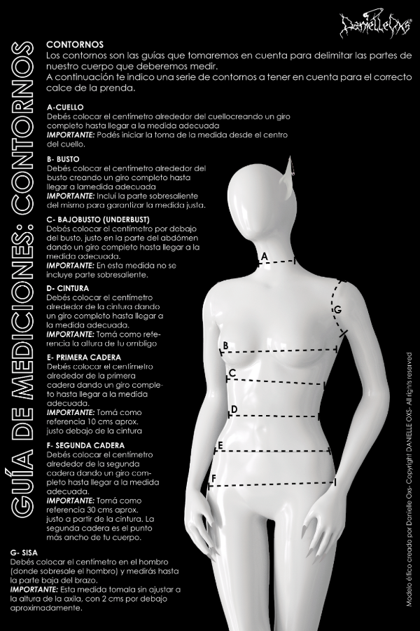 Chequeá las medidas que necesitas tomar en la última foto del producto. [En caso de solicitar una guía personalizada con gráficos específicos podés escribirme al mail danielleoxs.ds@gmail.com]